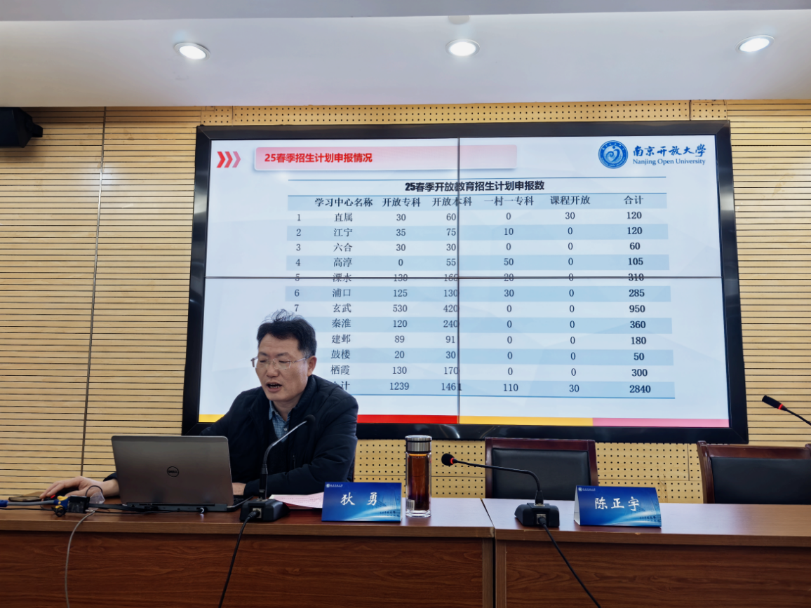 会上,狄勇结合招生详细数据总结了2024年秋季招生工作,指出了目前招生工作中存在的问题,部署了2025年春季招生工作。他强调,招生工作要坚持稳中求进,针对目前招生工作中存在的问题,一要推进招生制度建设;二要规范招生管理,防范办学风险;三要精准推送,强化招生宣传;提升招生能力,提高招生质量。同时,他还对上一季的考试工作进行了总结,并对本学期末考试工作做了具体要求和部署。继续教育中心副主任乐艺总结和通报了本学期教学实施、学籍管理、综合实践、教材征订、听评课等情况,对2025年开放教育教务教学工作提出了新的思路。