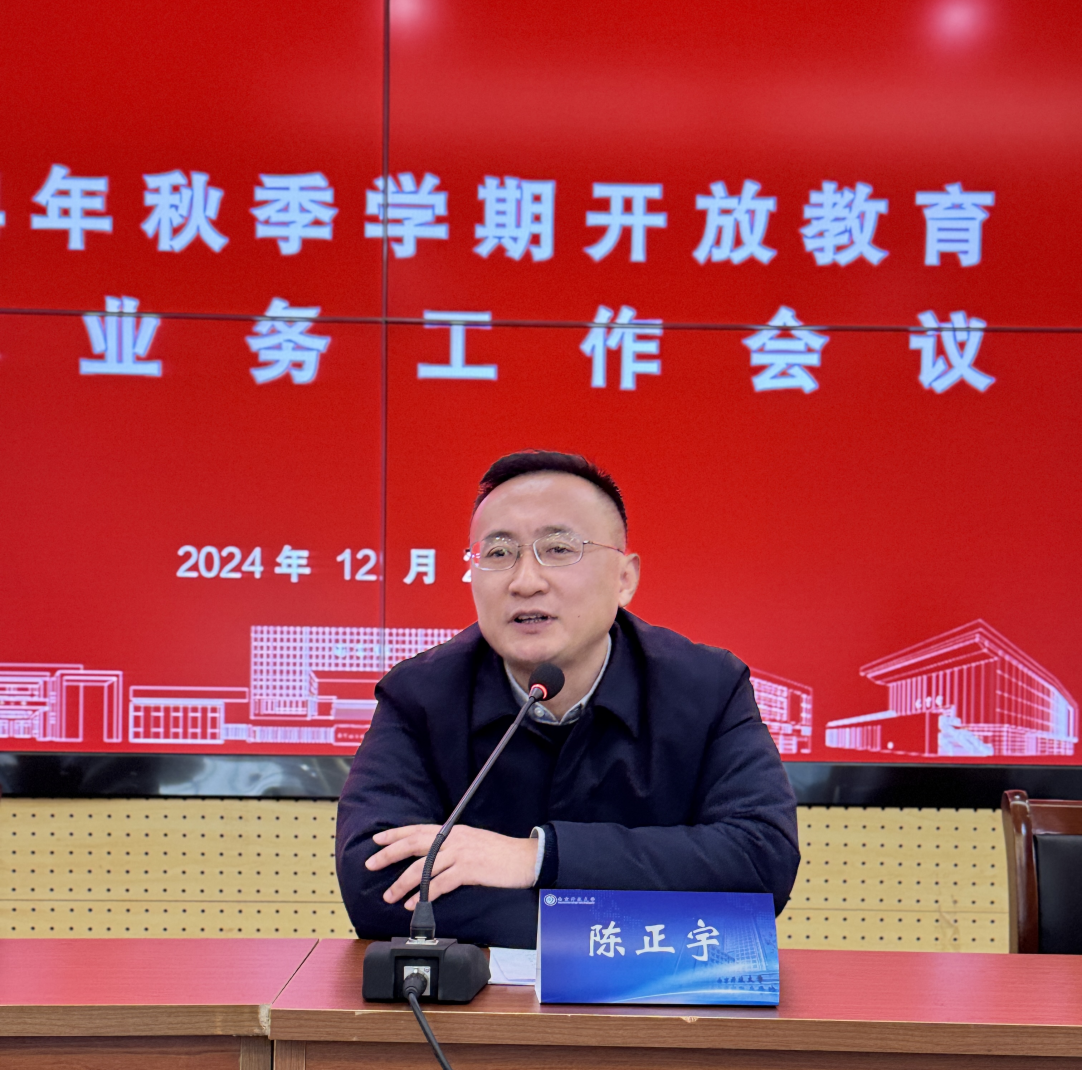 陈正宇副校长代表学校对全系统长期以来给予学校事业发展的支持和付出表示感谢,并就招生考试等工作作出总体部署和要求:一是提高站位,强化认识。要立足于学历继续教育出现的新形势、新要求,抓住发展的有利条件和机遇,深入推进“两教融合”,强化安全隐患排查、安全意识宣传和学生学习支持服务,实现开放教育的高质量发展;二是规范实施,防范风险。要规范招生宣传,守牢考试底线,防控办学风险隐患,做好沉淀生管理和服务保障工作。三是齐心协力,共同发展。开放教育全系统犹如一个紧密联结的大家庭,面对学历继续教育发展的困难和挑战,要携手并进,相互协调,共同推进全系统的建设和发展,努力开创发展新局面。
