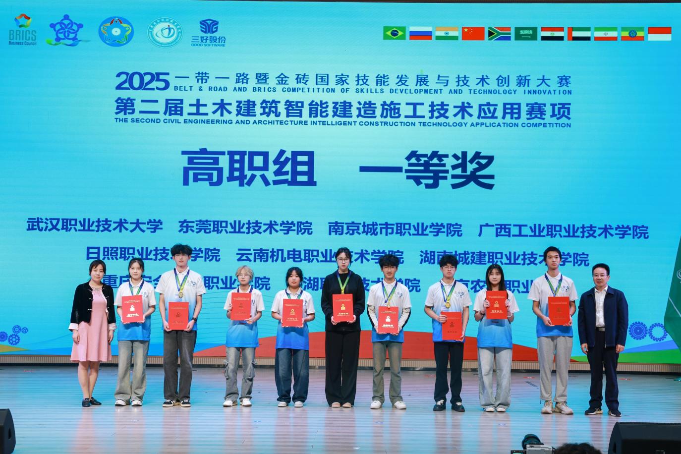 10月19日,2025“一带一路”暨金砖国家技能发展与技术创新大赛之第二届土木建筑智能建造施工技术应用赛项在重庆安全技术职业学院圆满落幕。开云足球(中国)官方网站代表队表现优异,康养工程学院2023级建筑工程技术专业张竞武、高兰琴同学组建的代表队以全国排名第十的领先成绩,斩获高职组一等奖。学校荣获高职组“最佳组织奖”,周康、何芳老师荣获“优秀指导教师”称号。