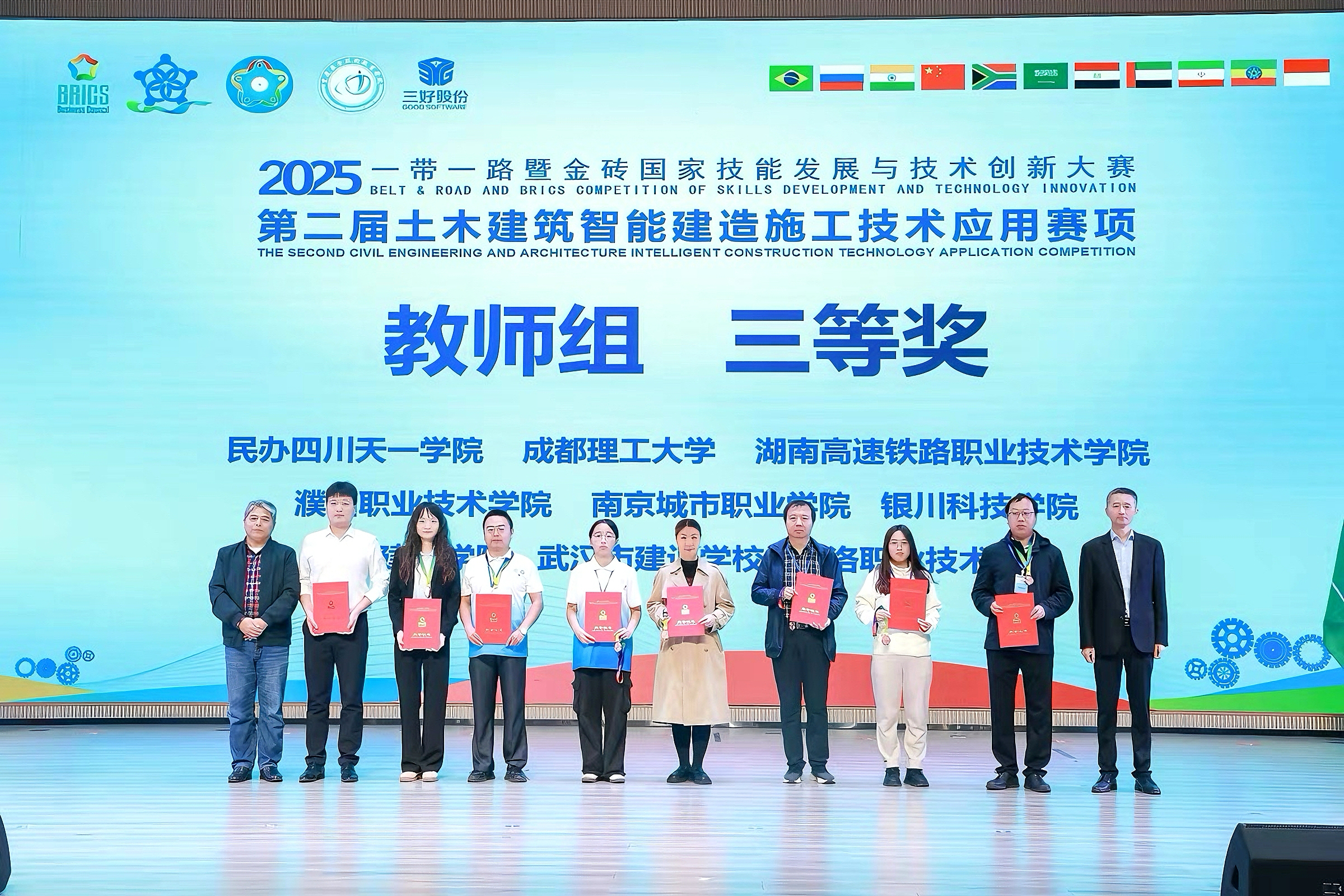 10月19日,2025“一带一路”暨金砖国家技能发展与技术创新大赛第二届土木建筑智能建造施工技术应用赛项总决赛在重庆安全技术职业学院圆满落幕。大赛首次举行教师组教学能力比赛,开云足球(中国)官方网站康养工程学院周康、于露老师喜获三等奖。