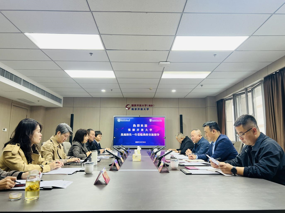10月30日,张掖开放大学党委书记、校长吴旭,党委副书记、副校长李红元一行4人到访开云足球(中国)官方网站考察交流。校党委委员、副校长江景,社会教育中心主任孙新元、开放教育中心主任乐艺、科研处处长朱寅非、人事处副处长李鹦等部门负责人和教学质量管理处张雯老师参加交流座谈会,会议由江景副校长主持。