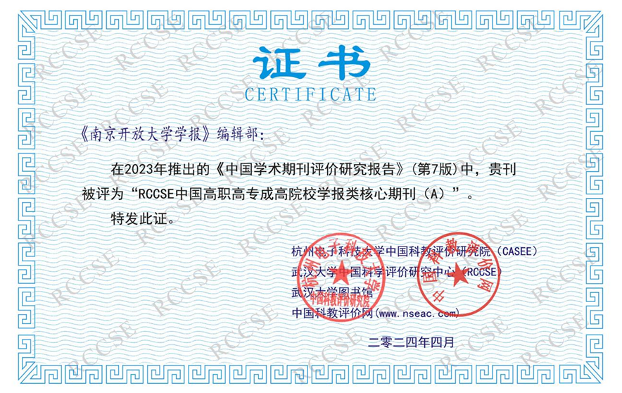 回顾既往,在2023年推出的《中国学术期刊评价研究报告》中,学报已凭借过硬的综合实力脱颖而出,被评为“RCCSE中国高职高专成高院校学报类核心期刊(A)”。作为国内公认的七大学术期刊评价体系之一,该荣誉为学报后续发展奠定了坚实基础,巩固了其在高职高专及成人高等教育学术期刊中的重要地位。